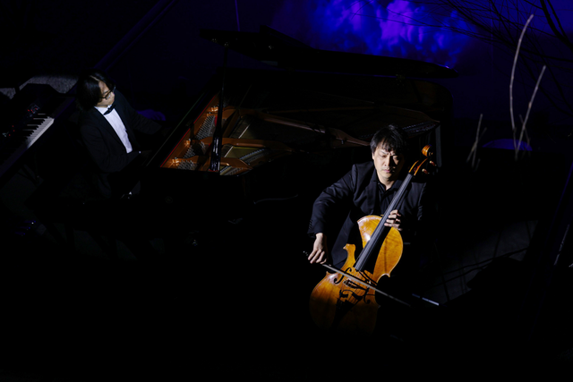 音乐是流动的建筑,建筑是凝固的音乐,这种艺术之间的共通性,放诸音乐与视觉艺术也一样。飞檐、流水、松枝、雪墙,“有梦”音乐会现场宛若一幅大型水墨丹青。